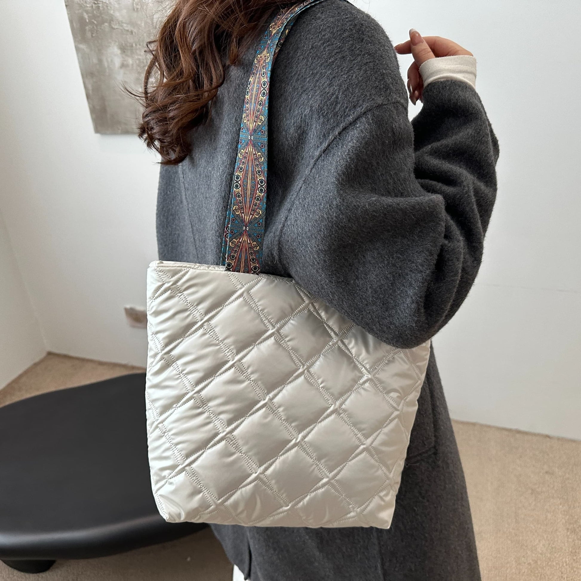 PU Leather Printed Strap Quilted Handbag